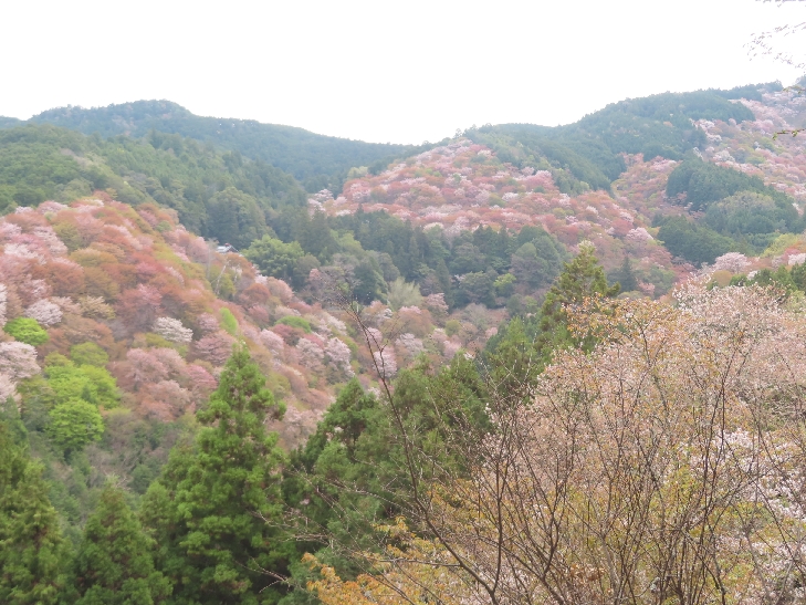 歴史の有る吉野山の桜は、約1300年前から御神木として植え始めて現在約3万本のシロヤマザクラ中心の景観が形成されたそうです。