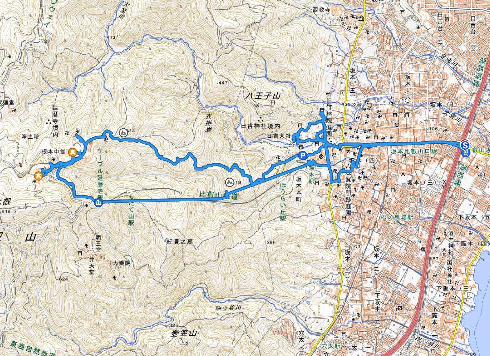 叡山坂本駅→日吉大社→ケーブル→延暦寺→叡山坂本駅