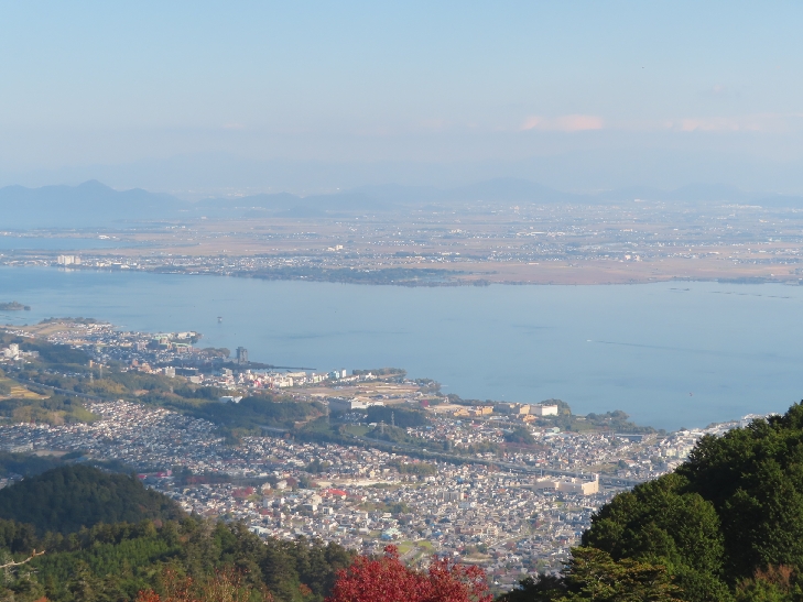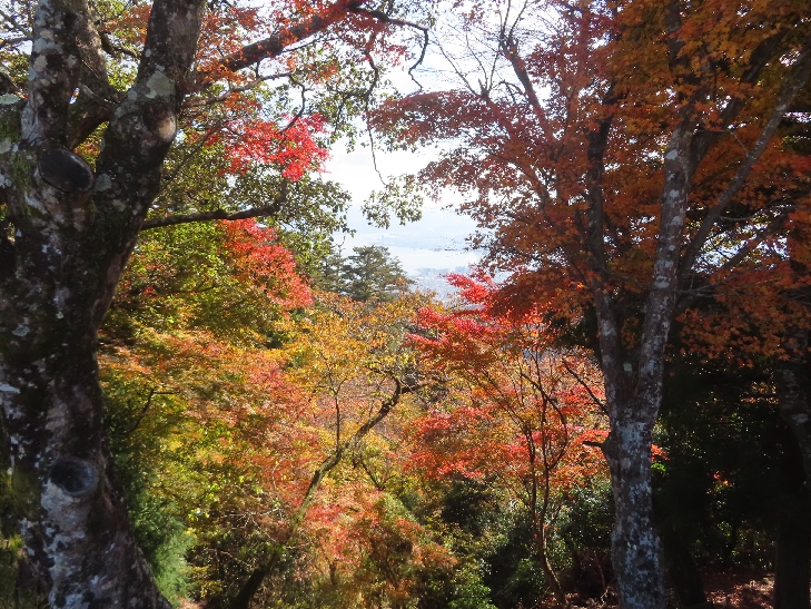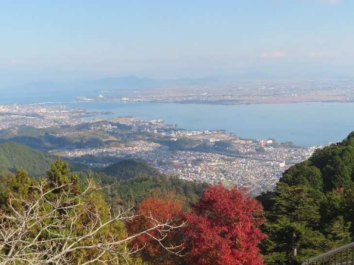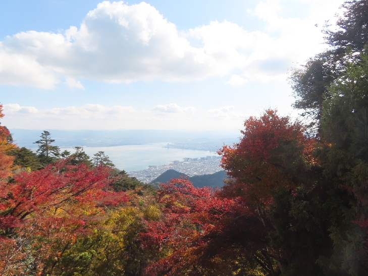 ケーブルで登ると駅から琵琶湖が一望出来て紅葉と重り爽快でした。😄
