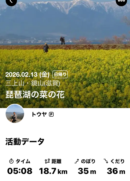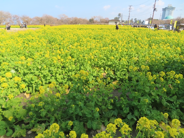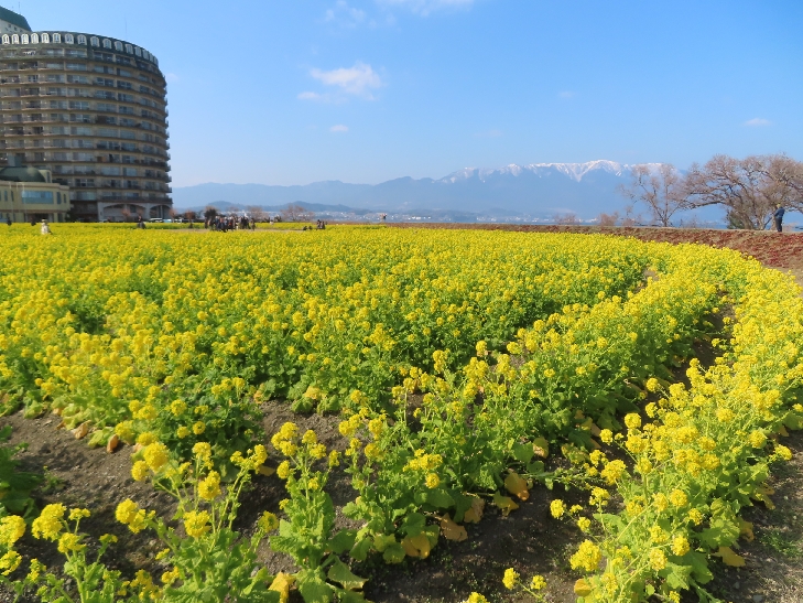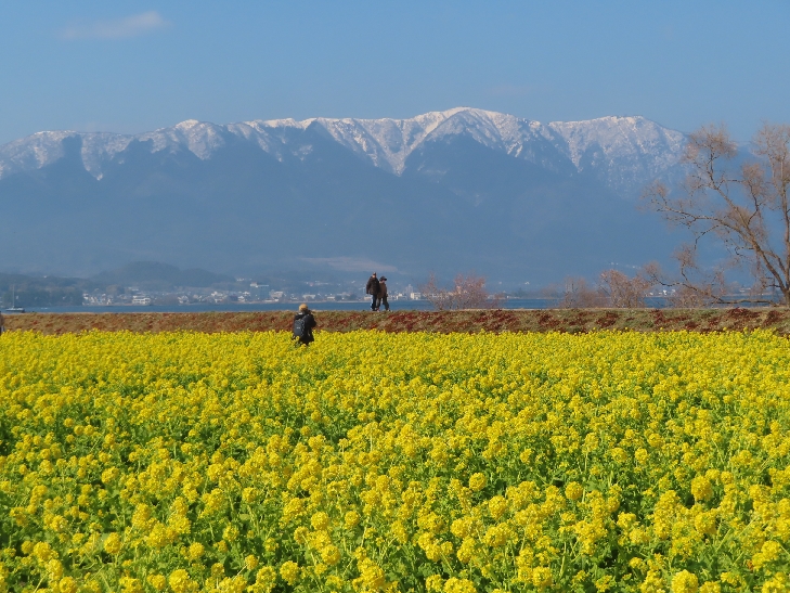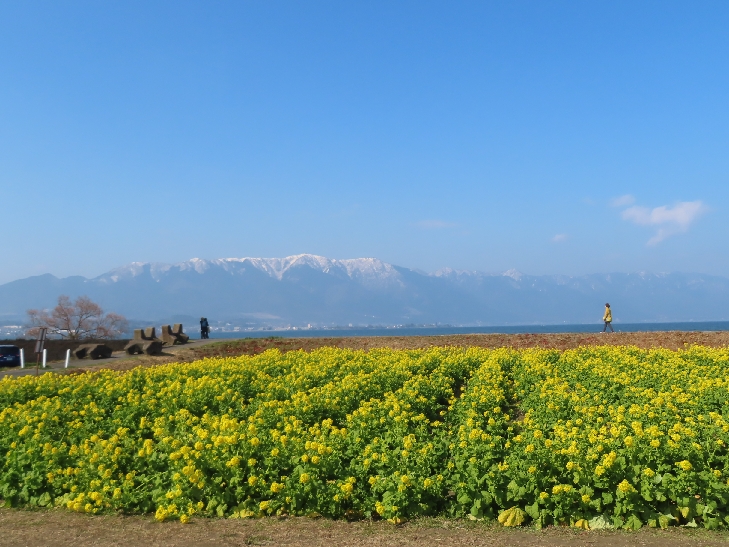 早咲きの12,000本の菜の花は満開で背景の比良山地とマッチして絶景でした。
