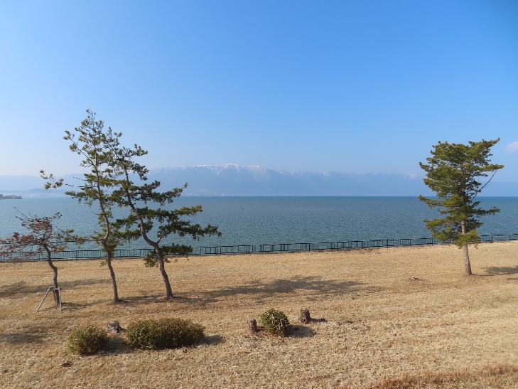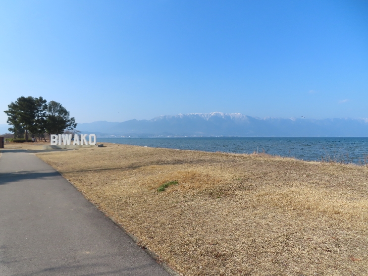 琵琶湖湖岸緑地も日本の都市公園100選に選ばれているそうで比良山系の雪景色を眺めながら何処まで歩いても続いていて途中までしか歩けませんでした。