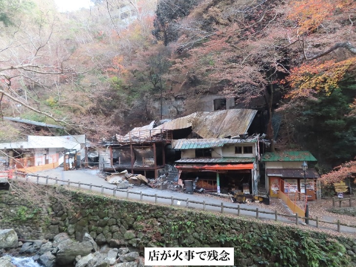 箕面滝の店が火事で黒焦げ状態で残念でした。