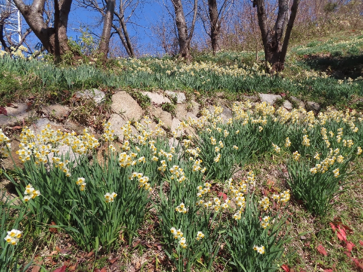 水仙郷は、ボランティアの方たちのお陰で見頃を迎えて香りが漂って癒されます。