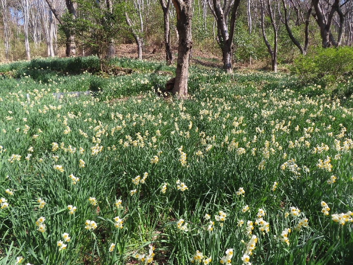 山上の水仙(募金1000円)は樹林とマッチして自然の中を気持ち良く楽しめます。