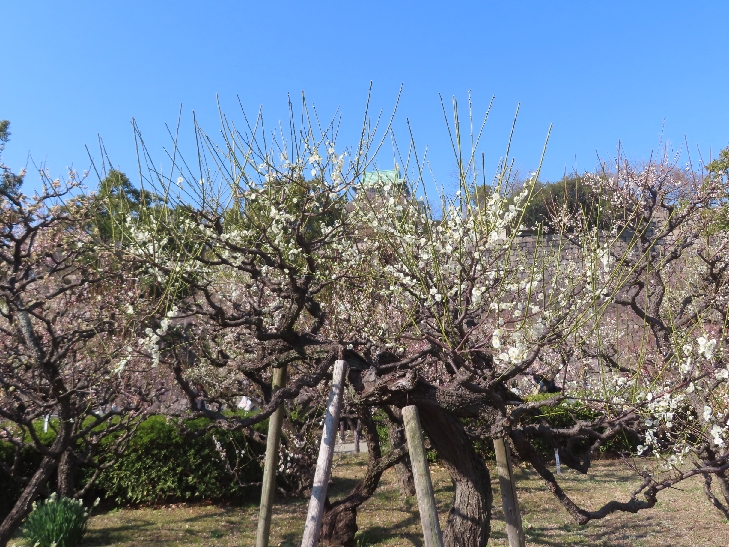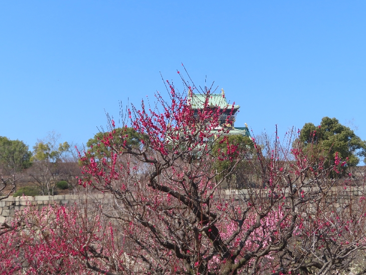 大阪城公園の梅林が見頃を迎えていると放映されていたので出掛けた。