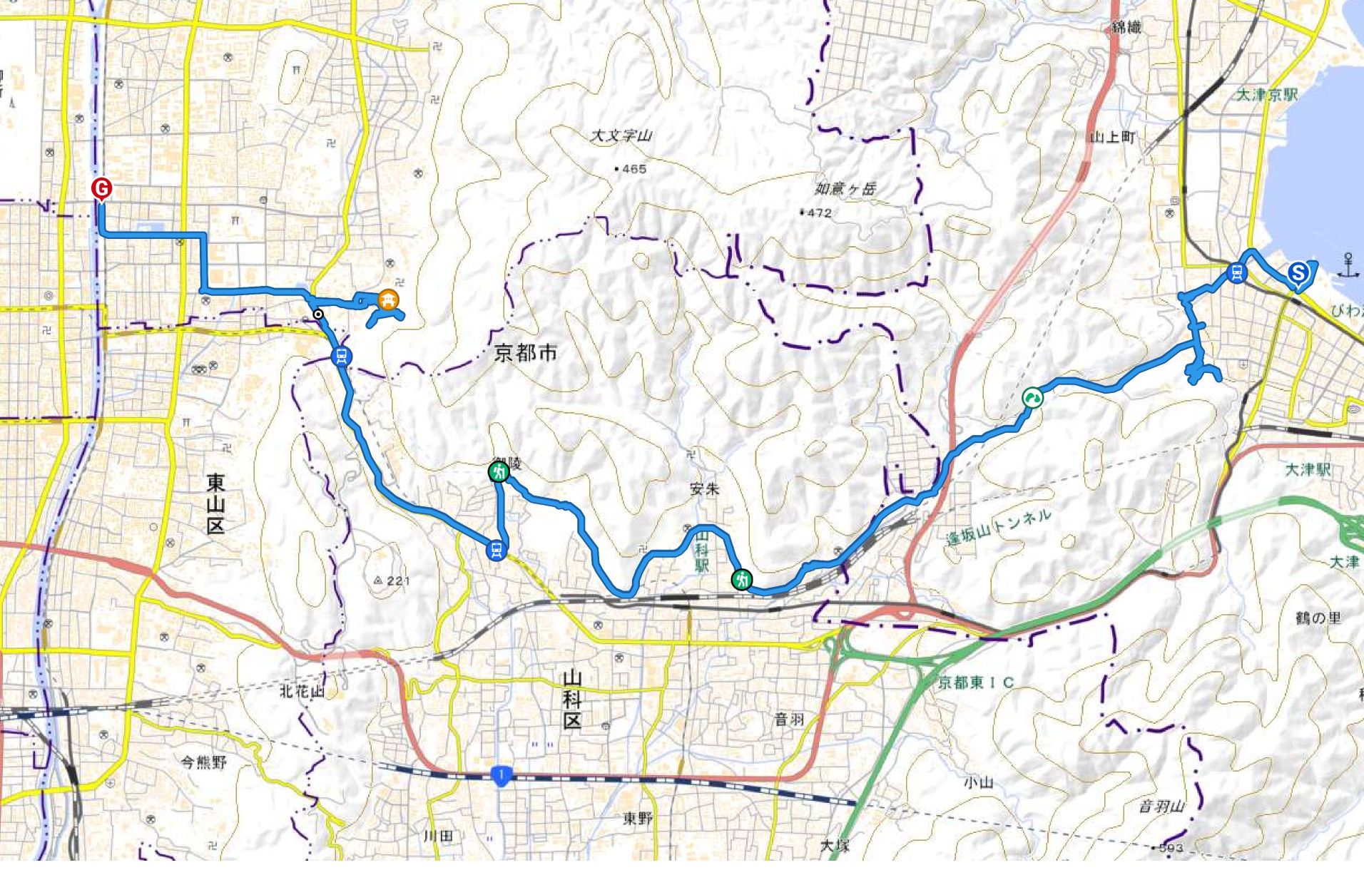 琵琶湖浜大津駅→長等公園→琵琶湖疎水→南禅寺→神宮丸太町駅