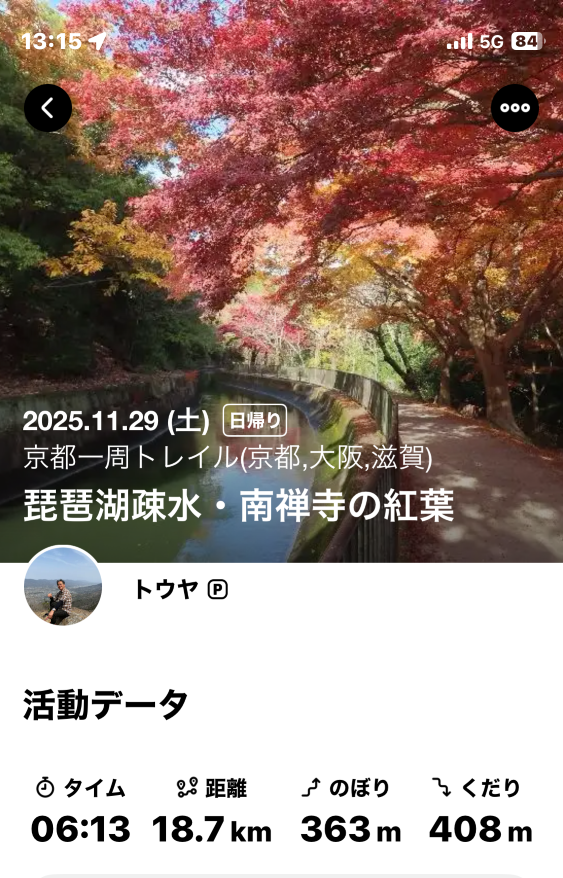琵琶湖疎水を新緑の頃に歩いてモミジが鮮やかだったので紅葉も見たくて出掛けた。