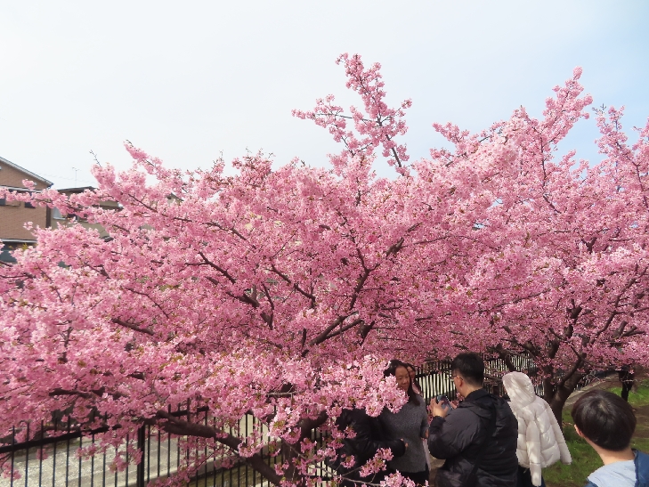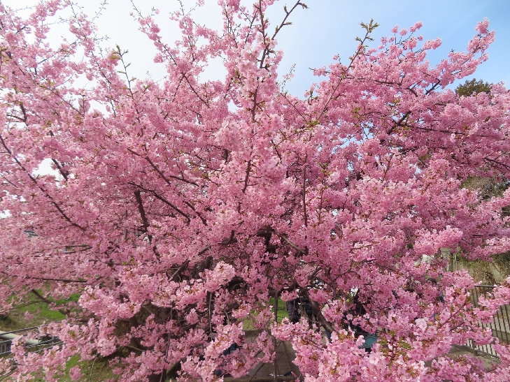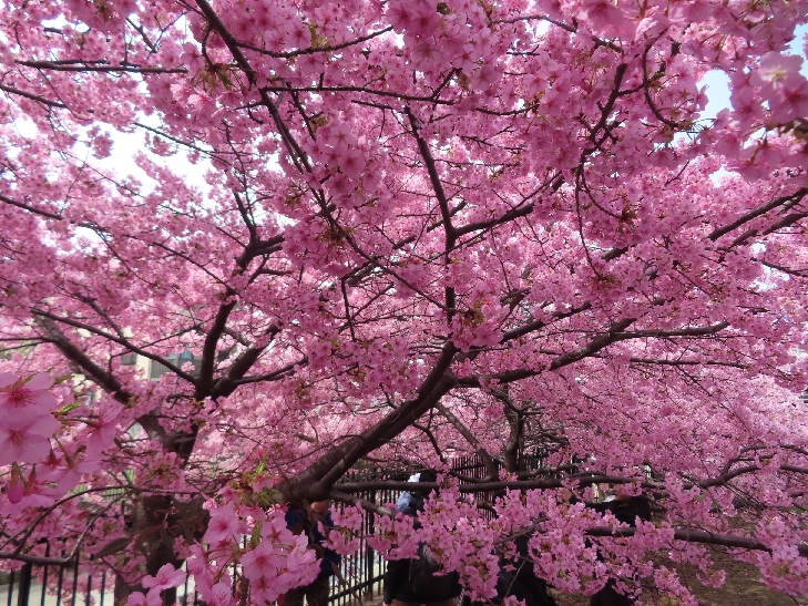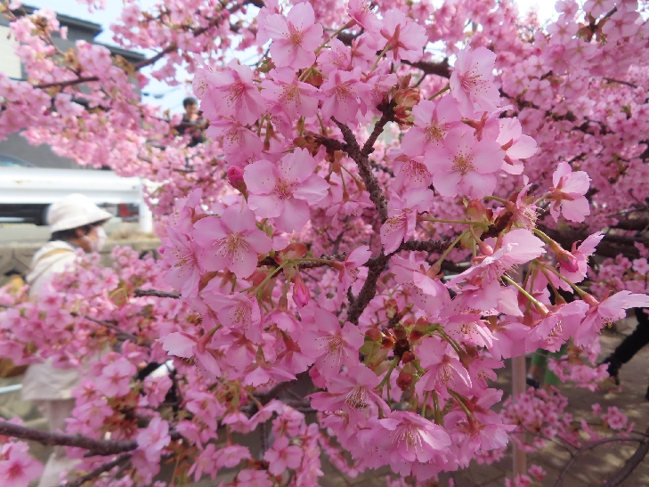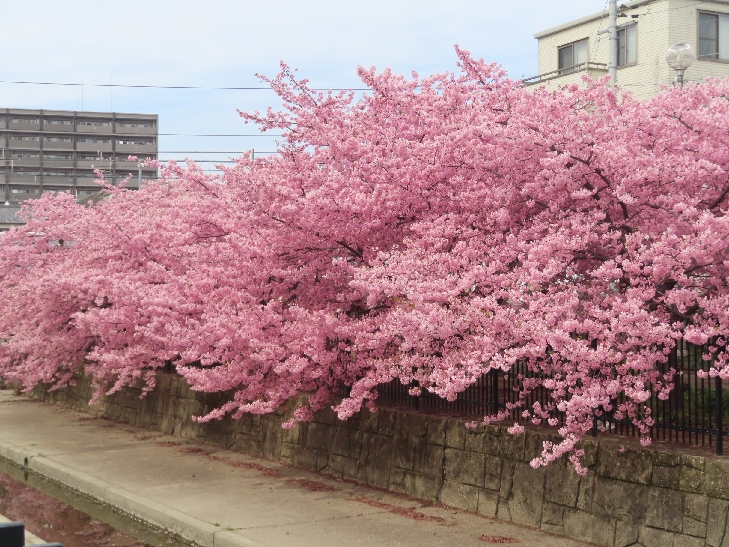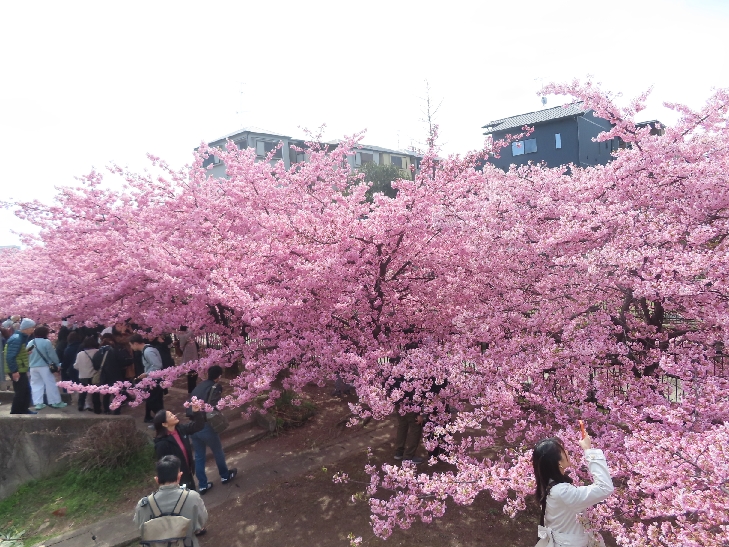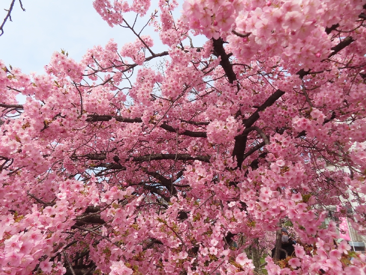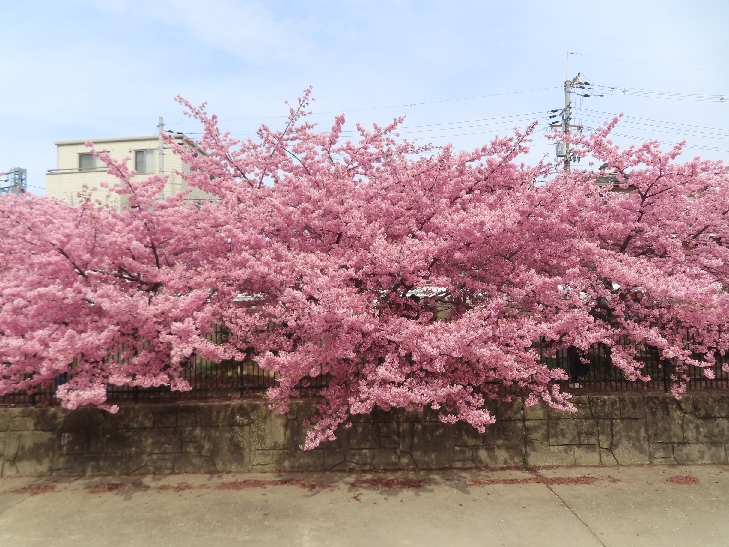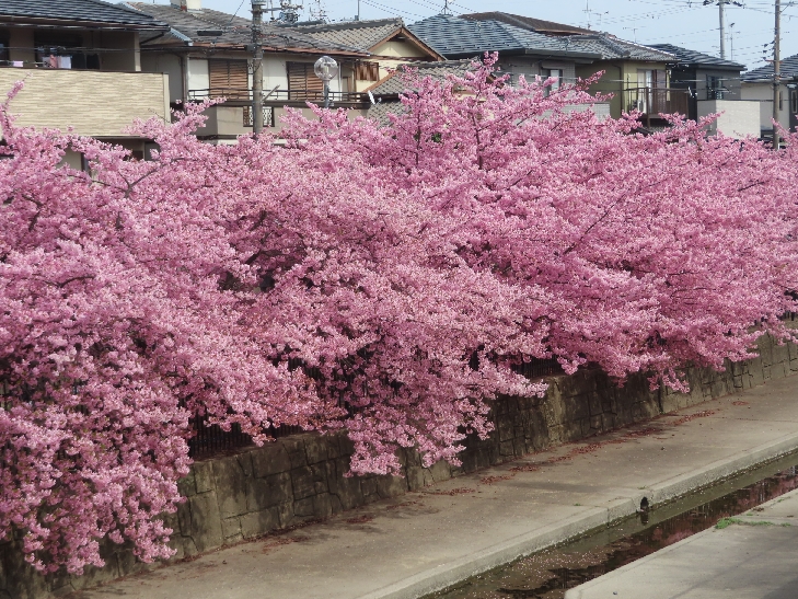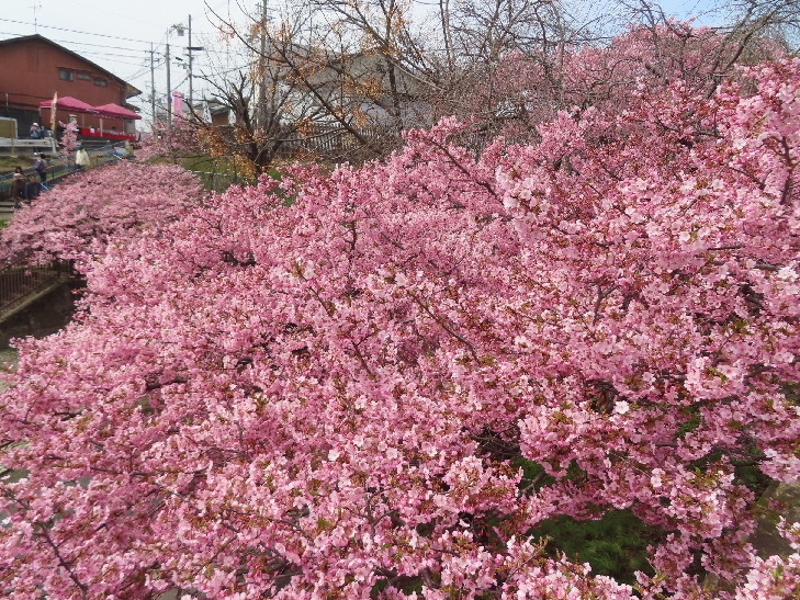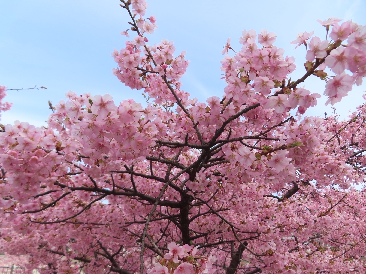 こんなに何処までも続いているような濃いピンクに咲き誇る河津桜を見たのは初めてで感動でした。