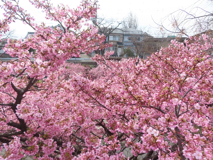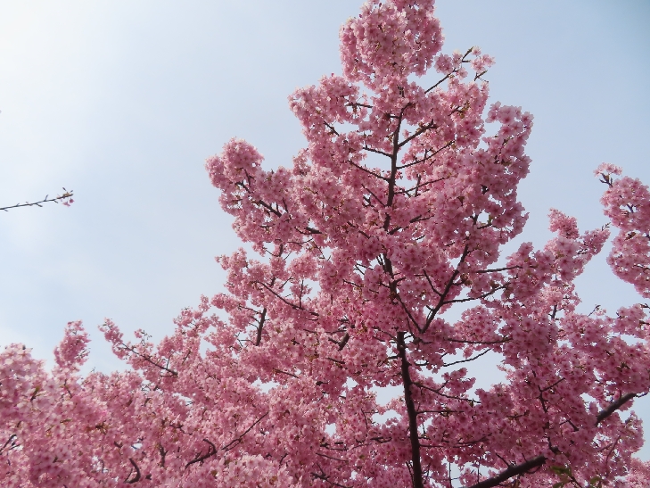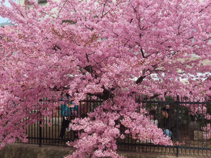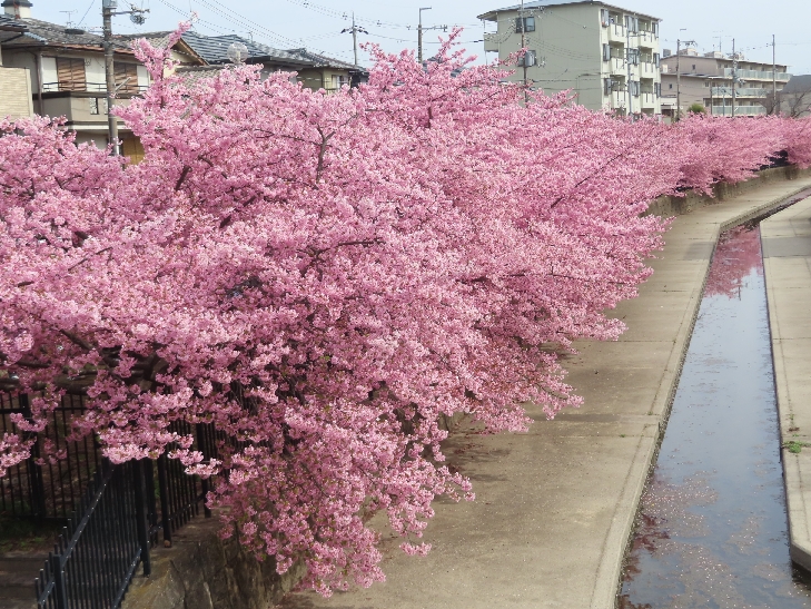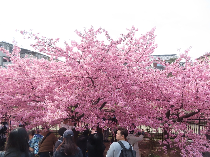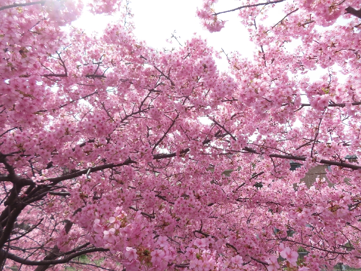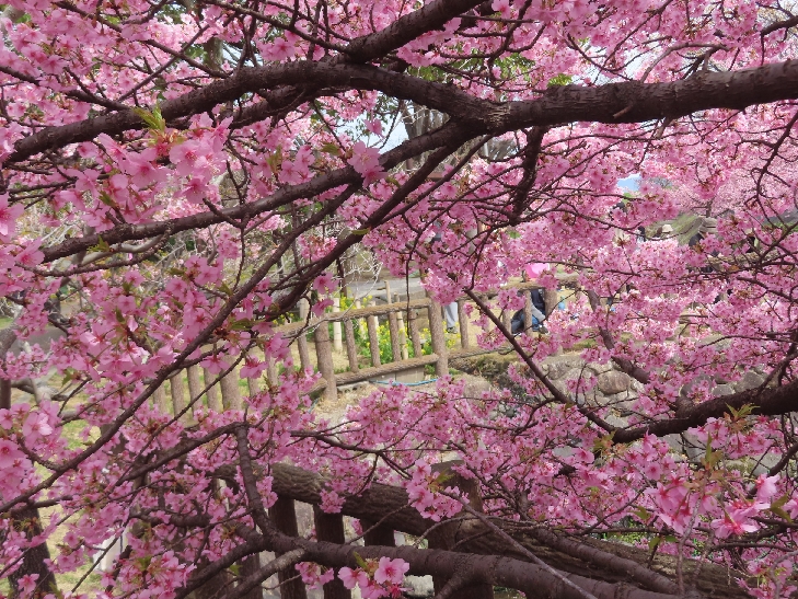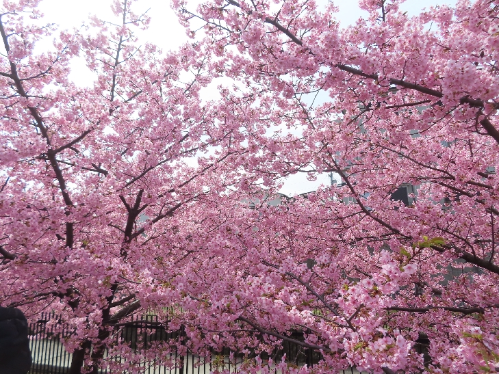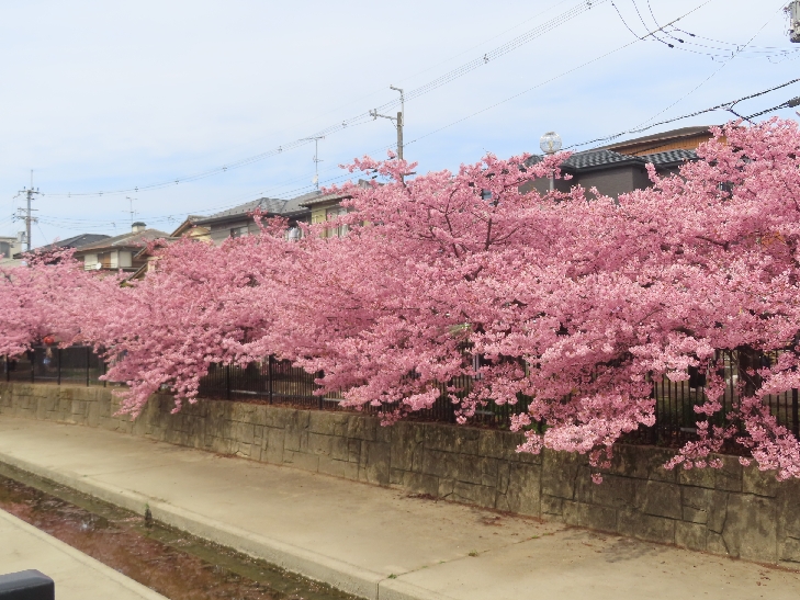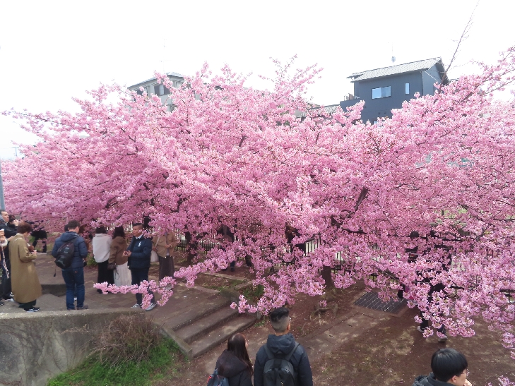 こんなに何処までも続いているような濃いピンクに咲き誇る河津桜を見たのは初めてで感動でした。