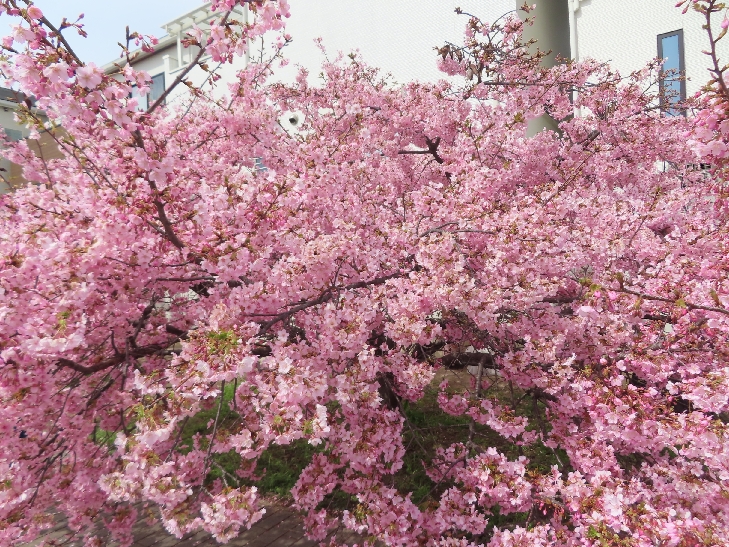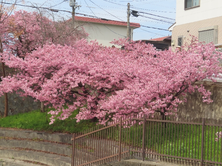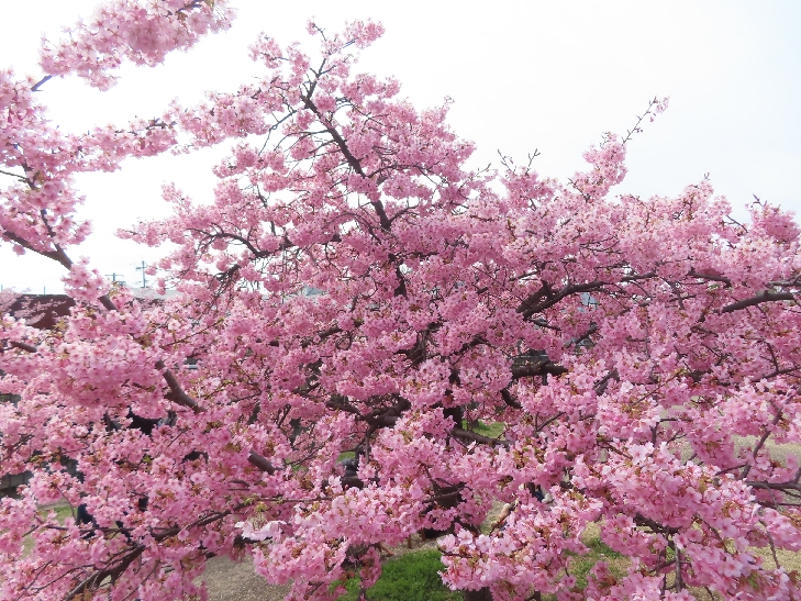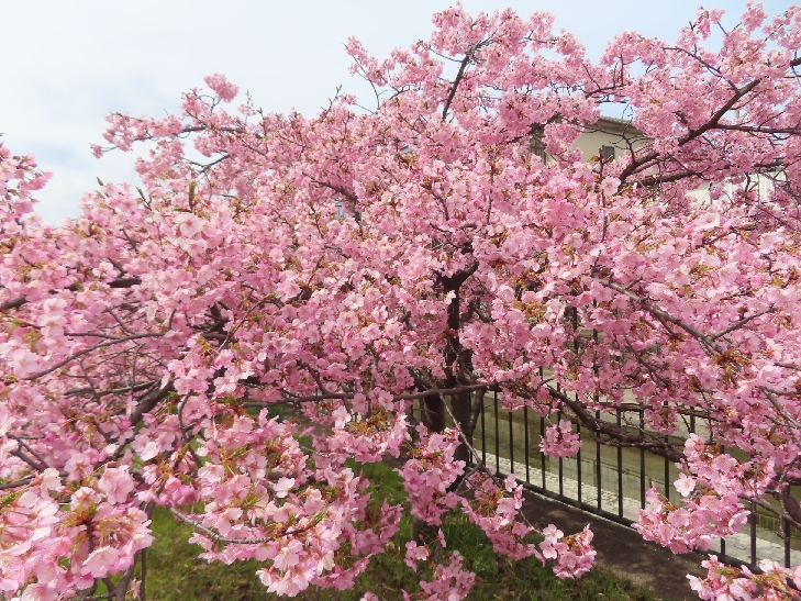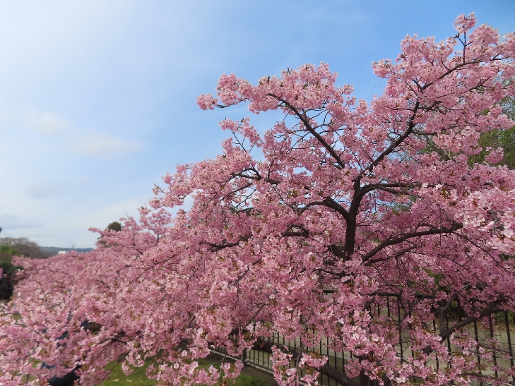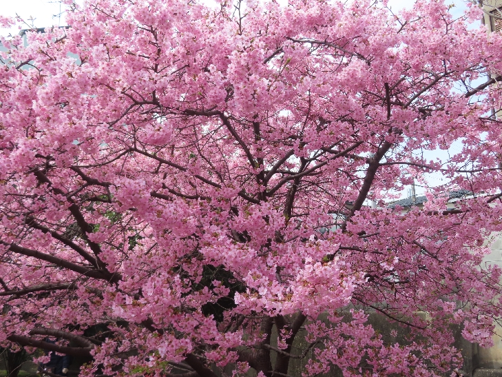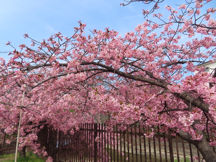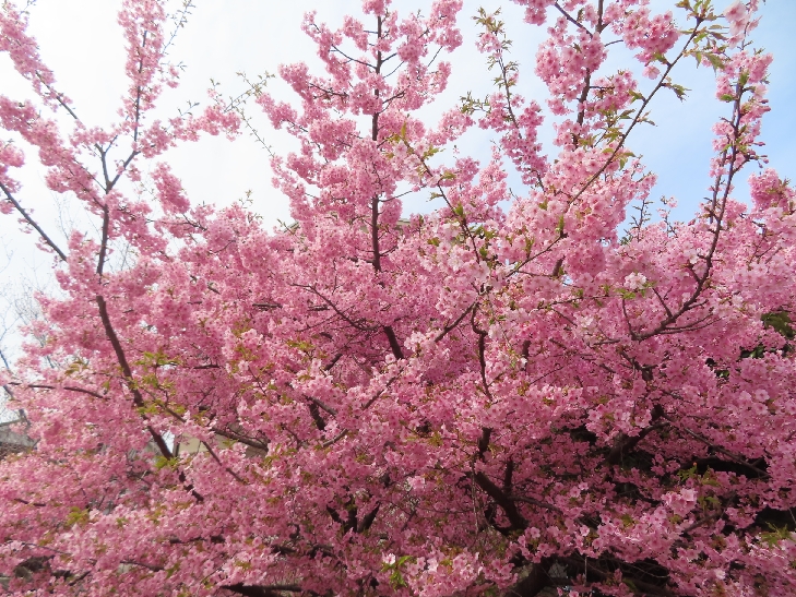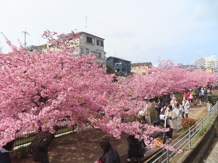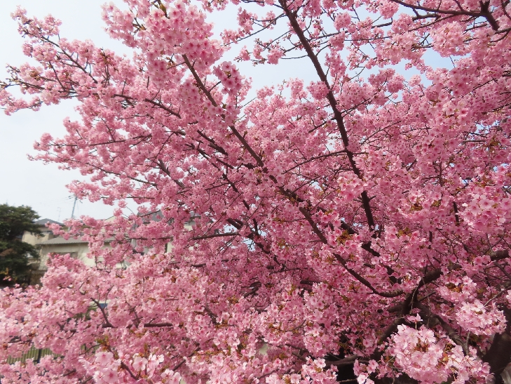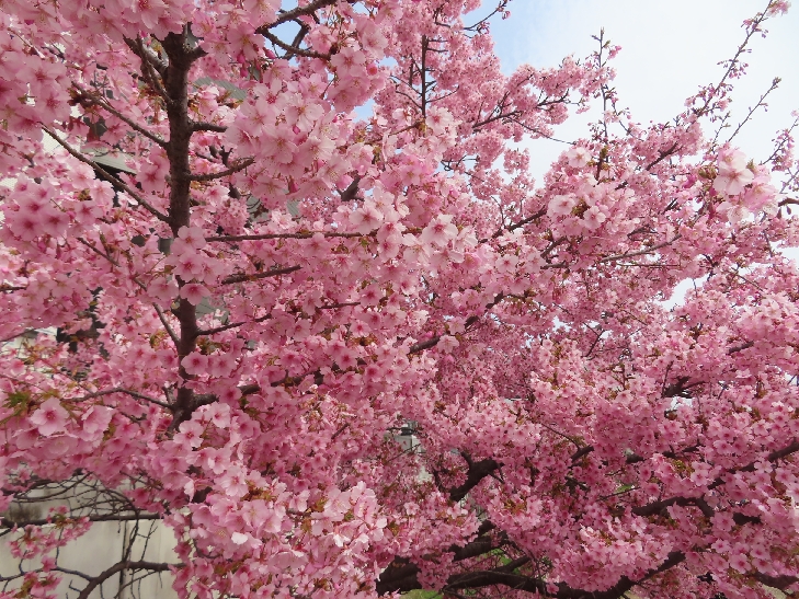 こんなに何処までも続いているような濃いピンクに咲き誇る河津桜を見たのは初めてで感動でした。