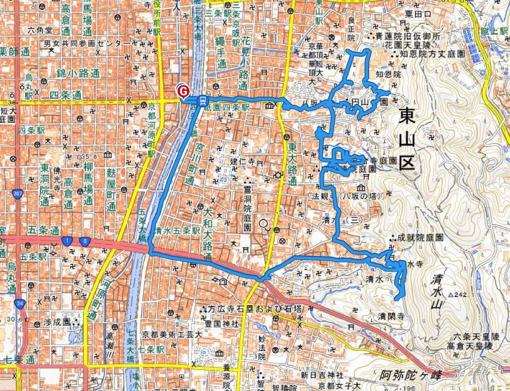 八坂神社→円山公園→知恩院→大雲院→高台寺→霊山観音→清水寺