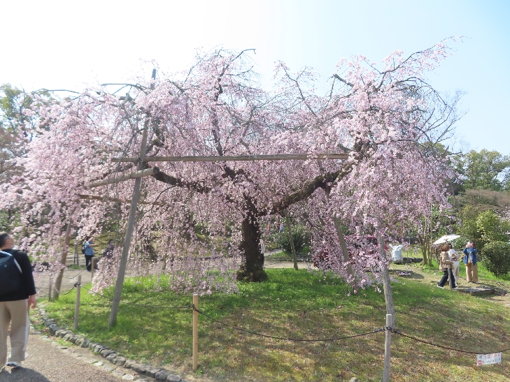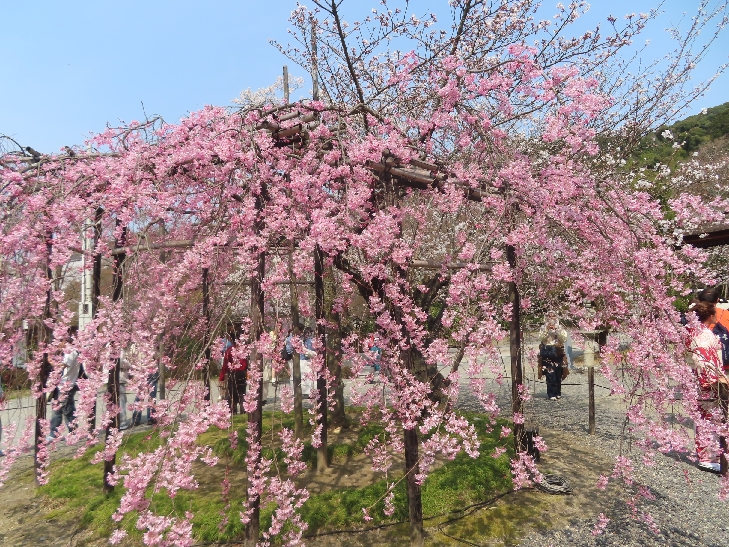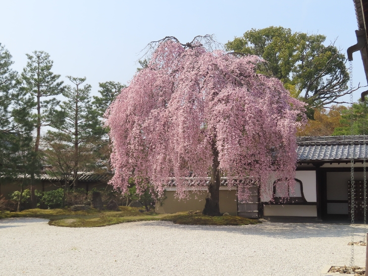 北政所ねねゆかりの高台寺万丈庭園の枝垂れ桜は大きく咲き誇って華麗で優雅さが感じられました。