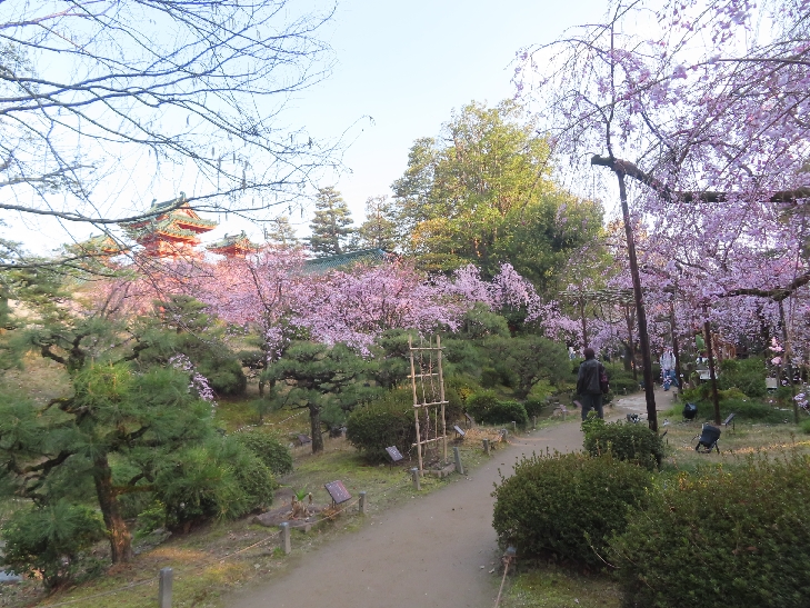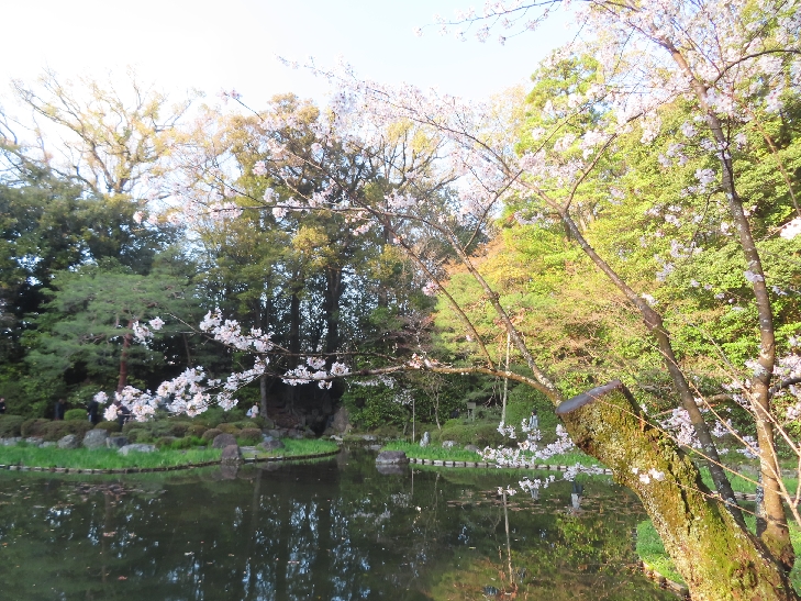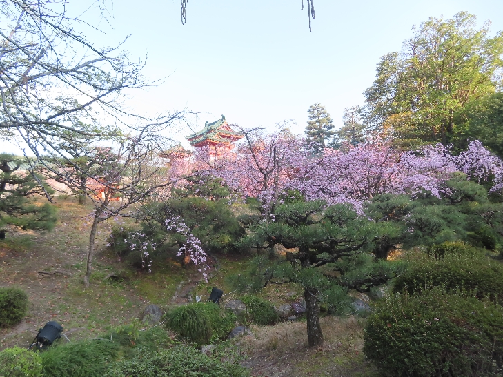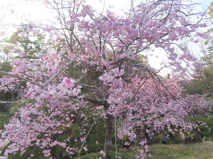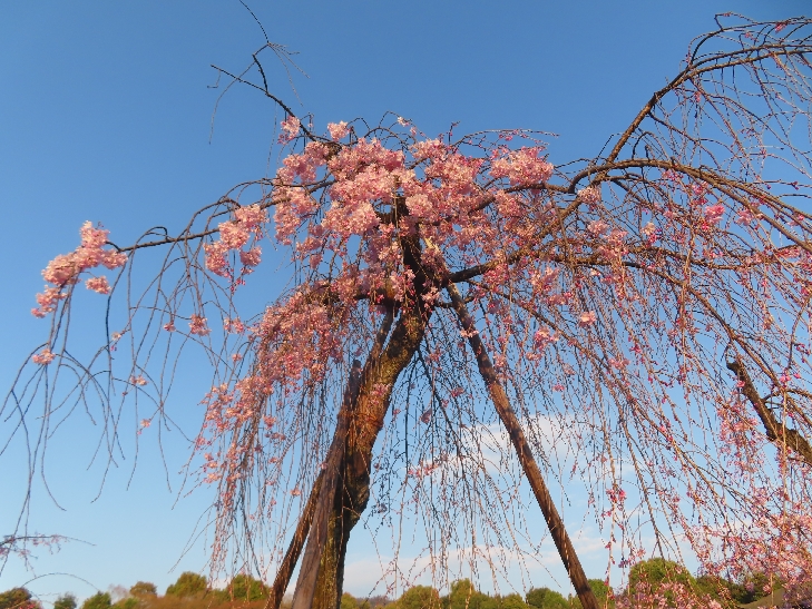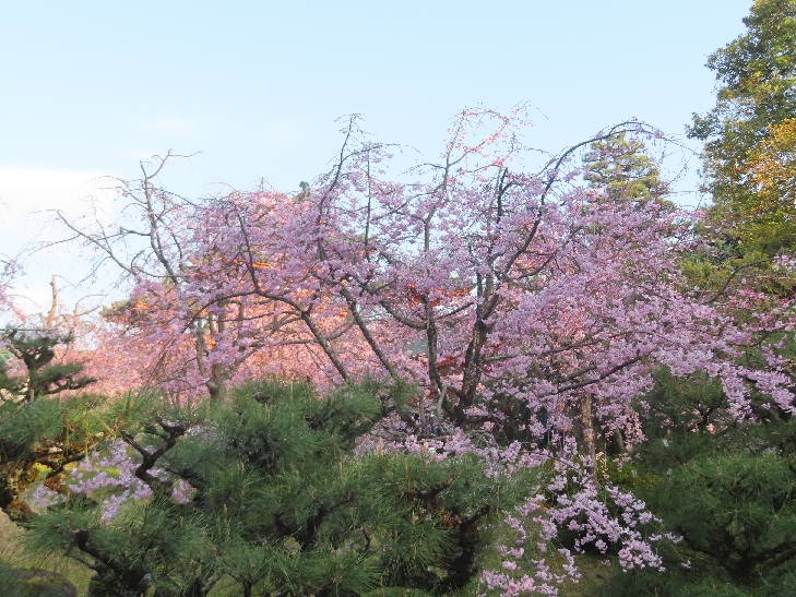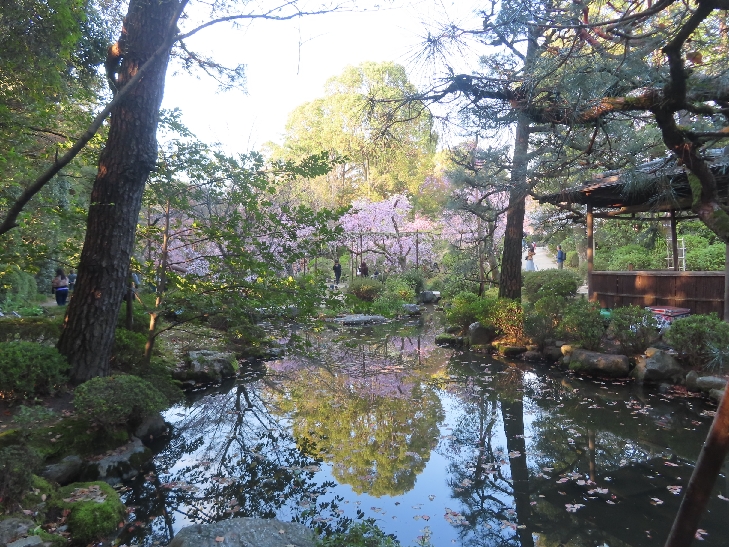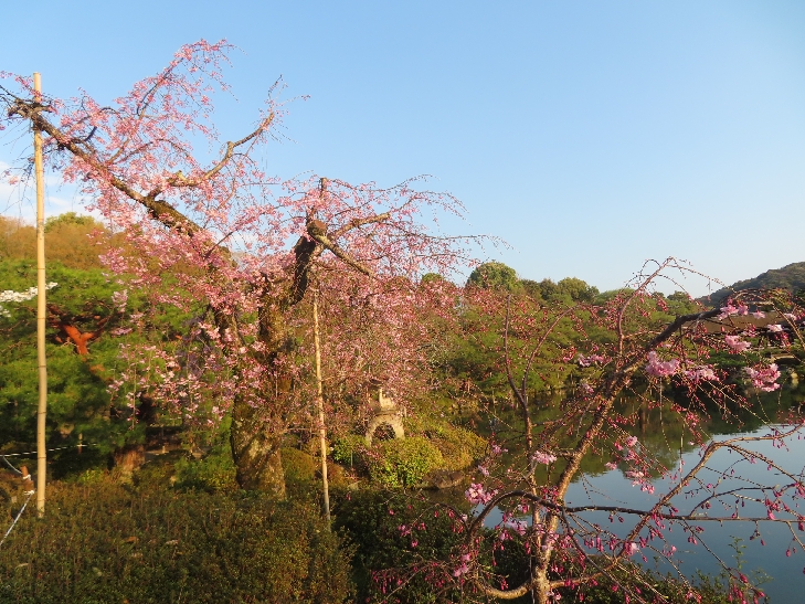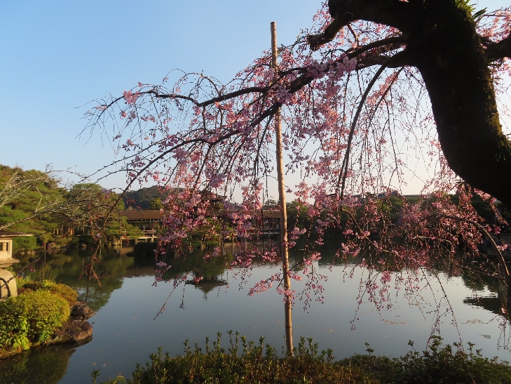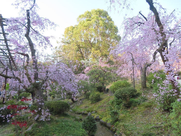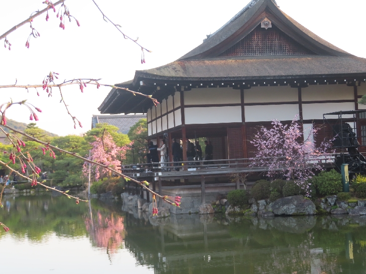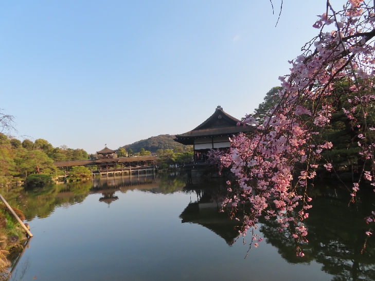 平安神宮の神苑に咲き誇る紅しだれ桜は、鮮やかで雅な感じがして和みます。
