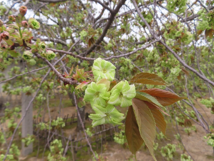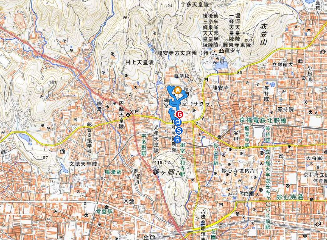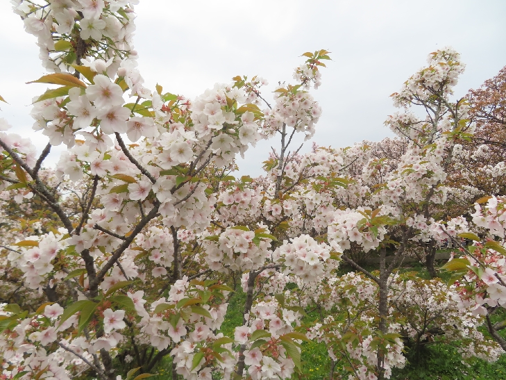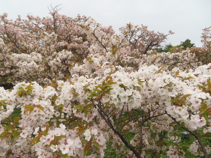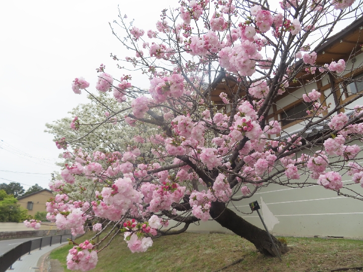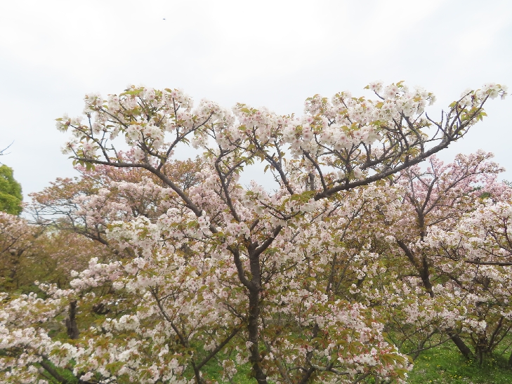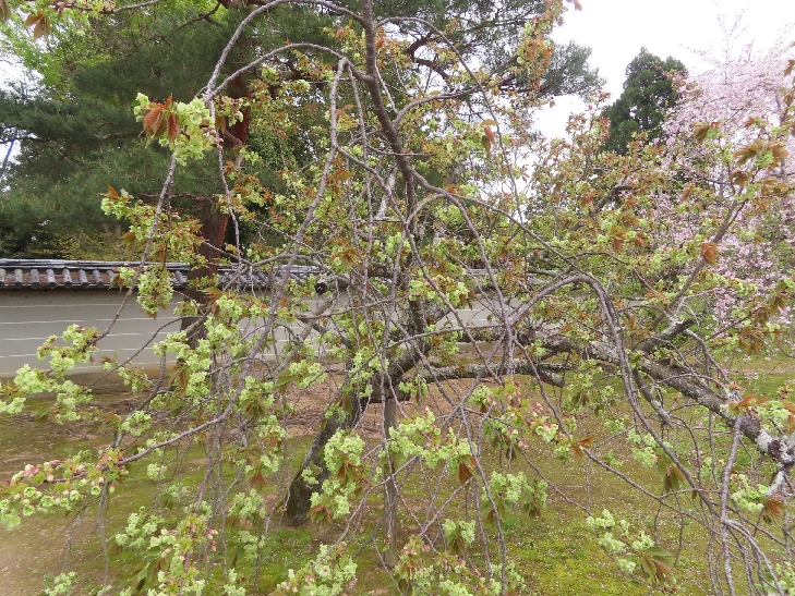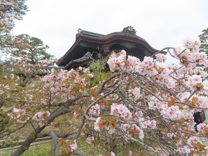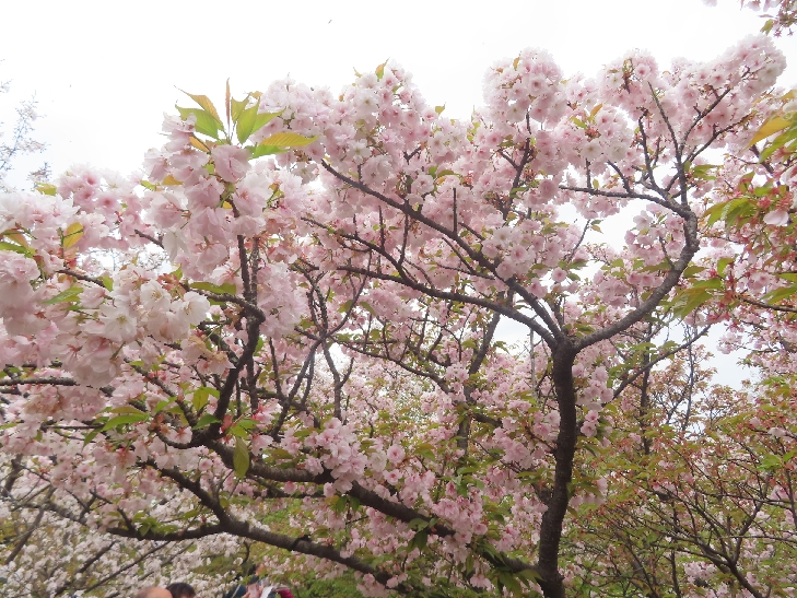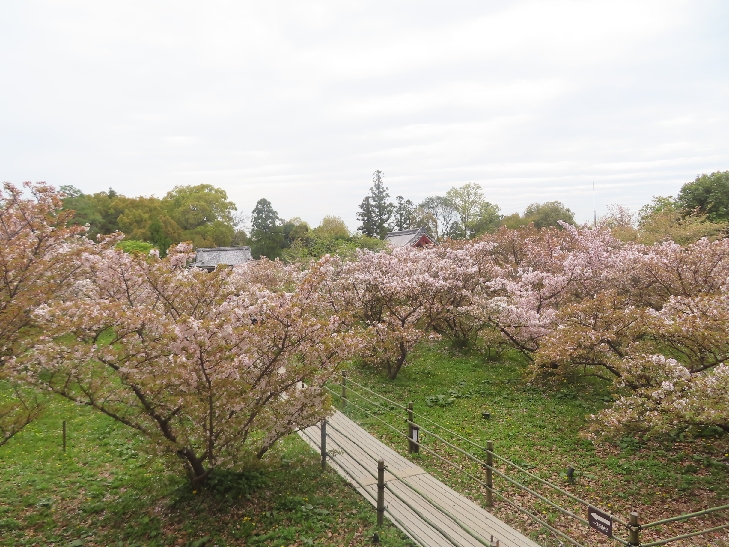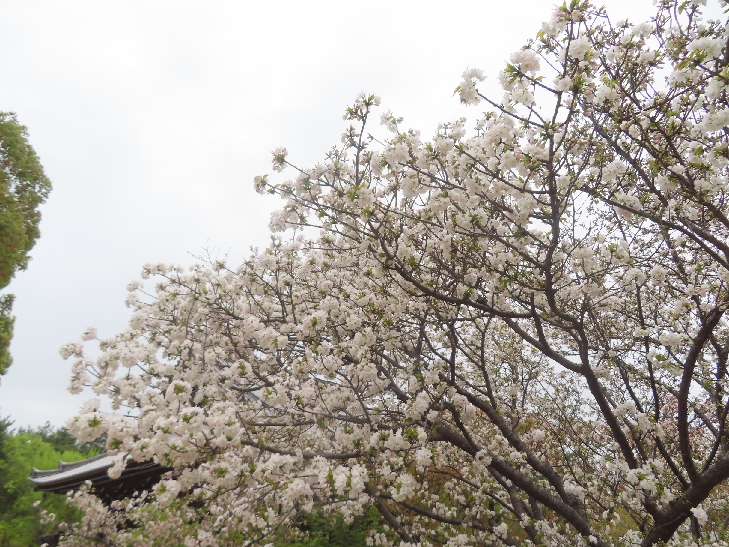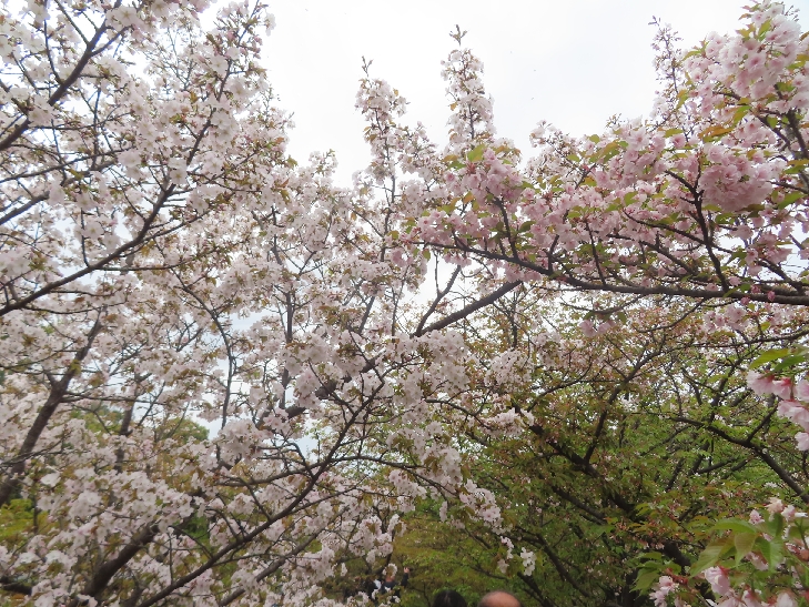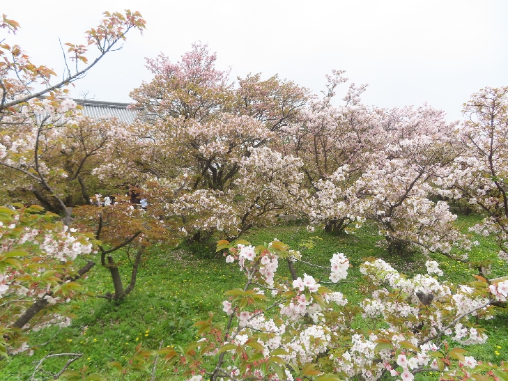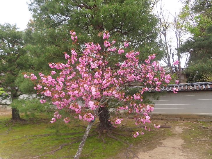 御室桜は、遅咲きの桜として知られ丈が低くて根元から枝を張っている為、 足元から目元まで体全体で桜を感じる事が出来る感じは初めてでした。