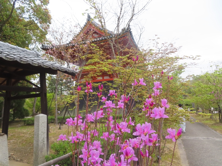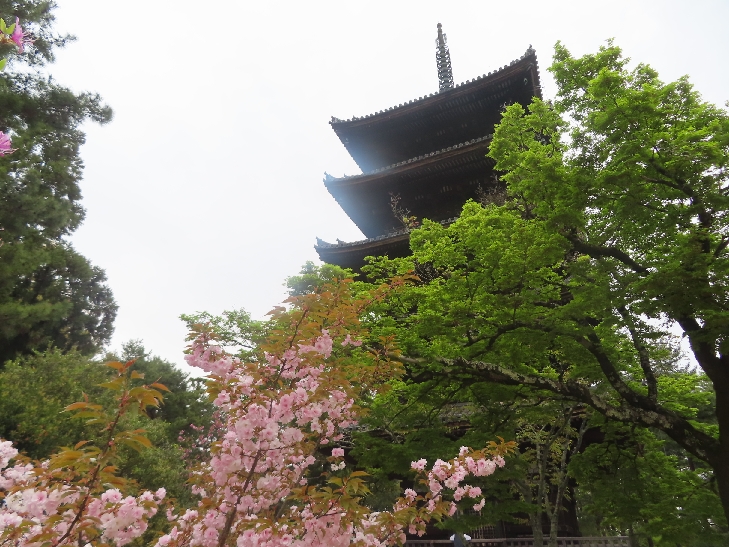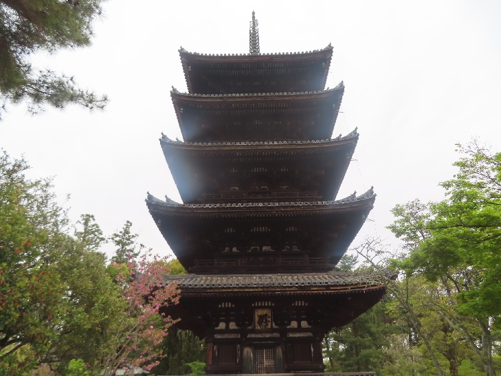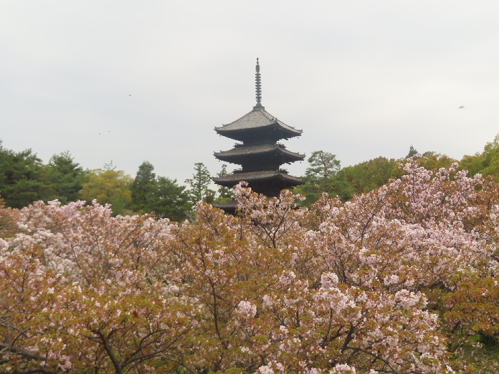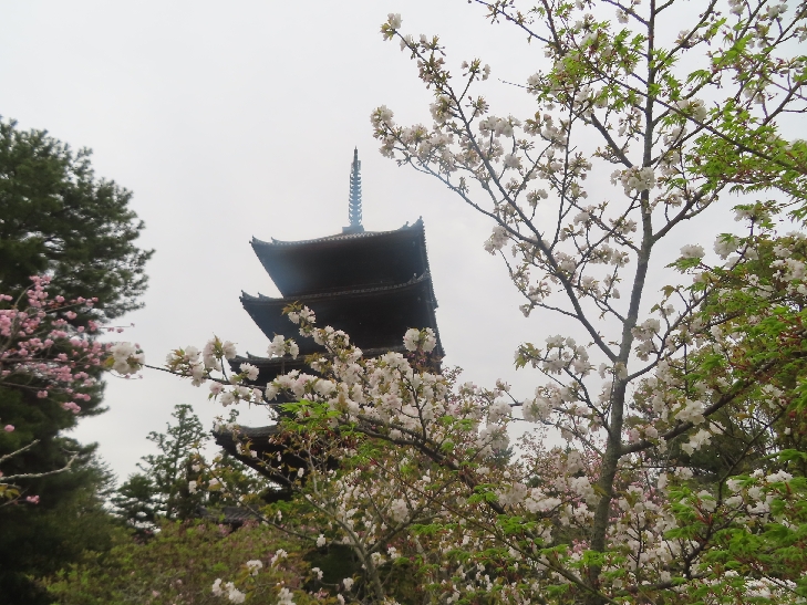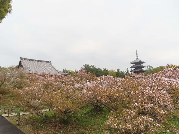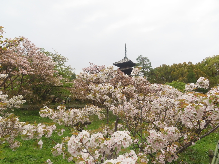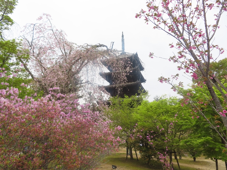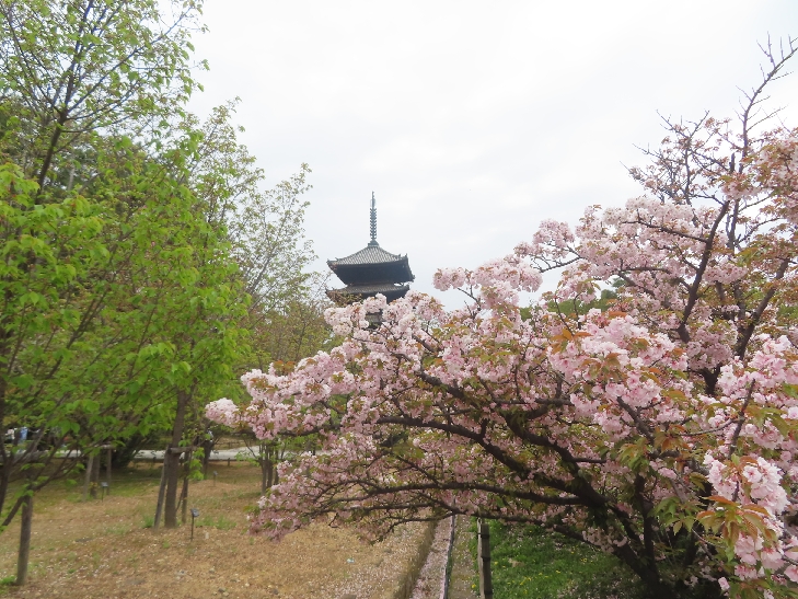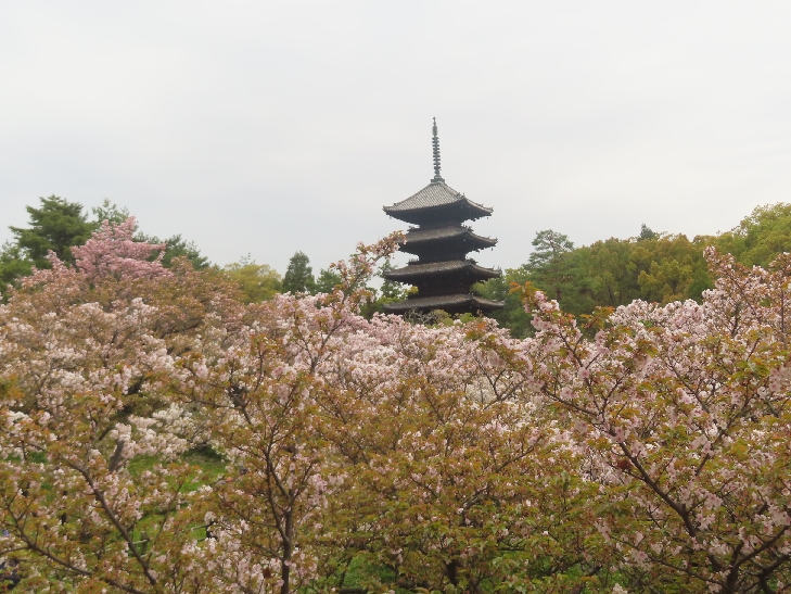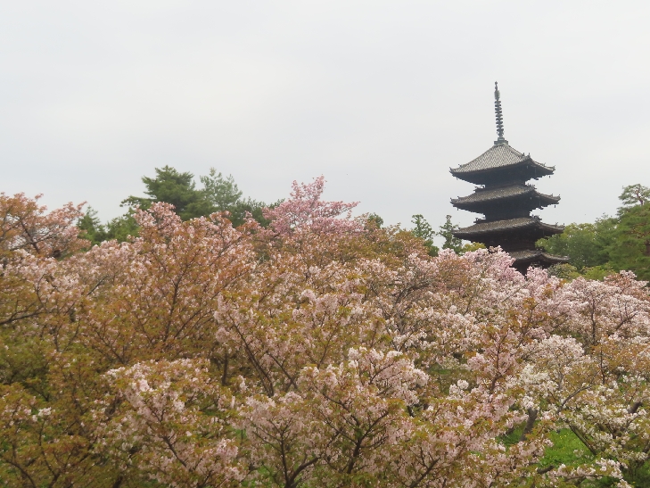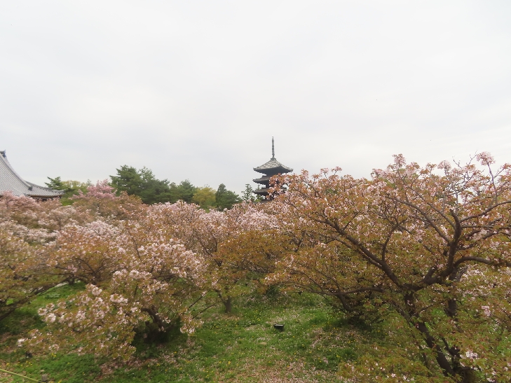 五重塔に映える遅咲きの御室桜を見たくて散策した。