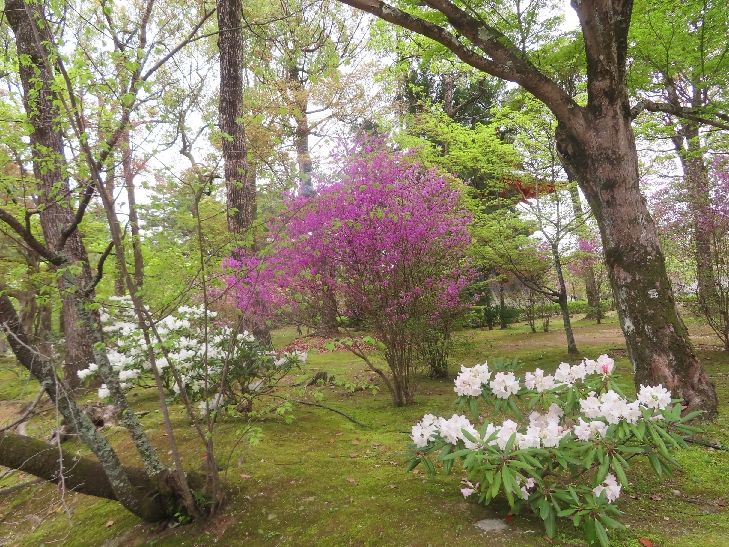 新緑のモミジとシャクナゲやツツジも同時に見れてこの時期ならではの風景を楽しみました。