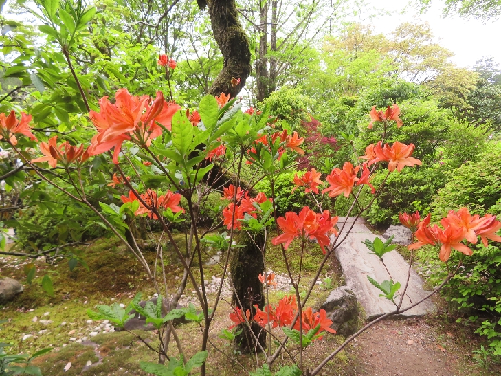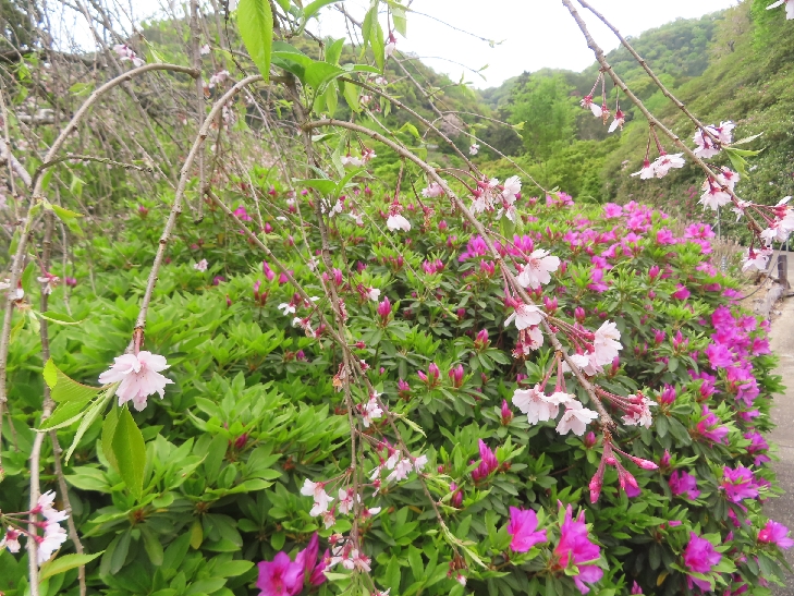 ツツジの花模様の中をウグイスとメジロの囀りを聞きながらの散策は贅沢な時間でした。