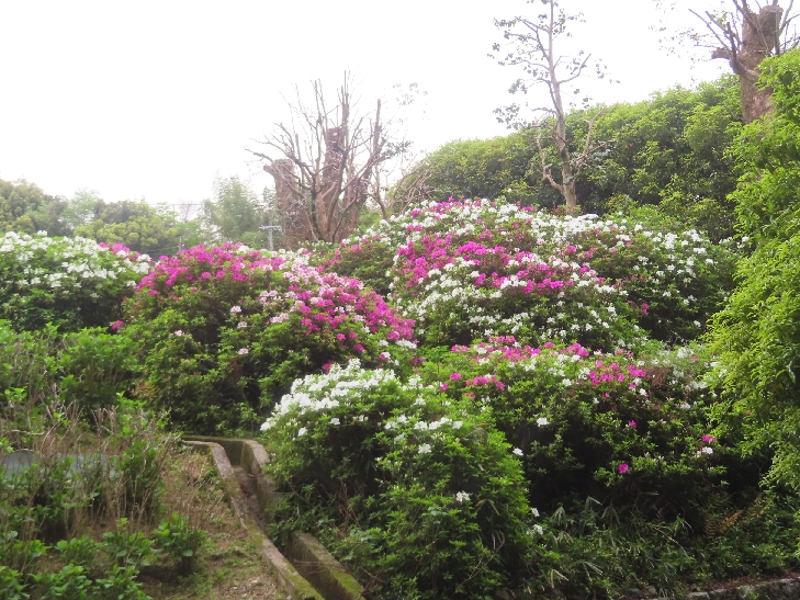 平戸ツツジは、未だ3割程の開花でしたが一部は紫・ピンク・白が咲いていて楽しめました。