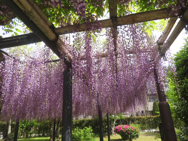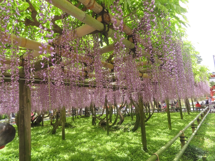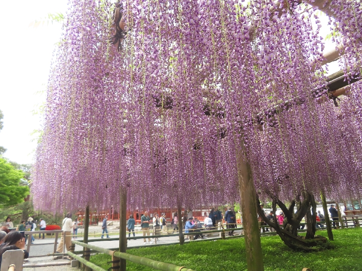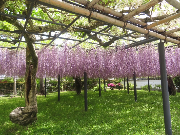 樹齢280年~300年のノダフジが、花房が1メートル位ありほぼ満開で香も漂って見事でした。